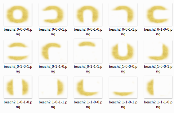 3. Once the configuration is determined, the appropriate beach texture is added on top of the mask. The 4-digit text string maps directly to filenames. So if the function receives a 0-1-0-0 string, it knows to use beach_0-1-0-0.png: