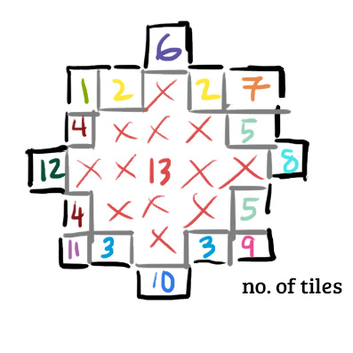 0-0-0-0: Represents 0 adjacent tiles
